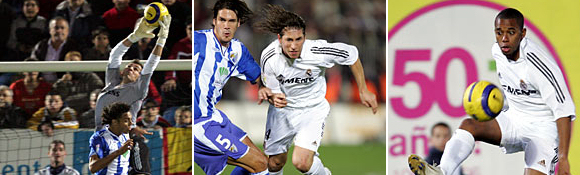 0 - MÁLAGA C.F.: Arnau; César Navas, Fernando Sanz (Morales 73¢¥), Valcarce (Diego Castro 84¢¥), Alexis; Juan Rodríguez, Nacho, Anderson, Edgar; Antonio Hidalgo (Paco Esteban 56¢¥) y Salva.2 - REAL MADRID: Casillas; Salgado, Pavón, Helguera, Roberto Carlos; Sergio Ramos, Guti, Zidane, Robinho (Diogo 86¢¥); Baptista (Pablo García 84¢¥) y Ronaldo. | |||||||||